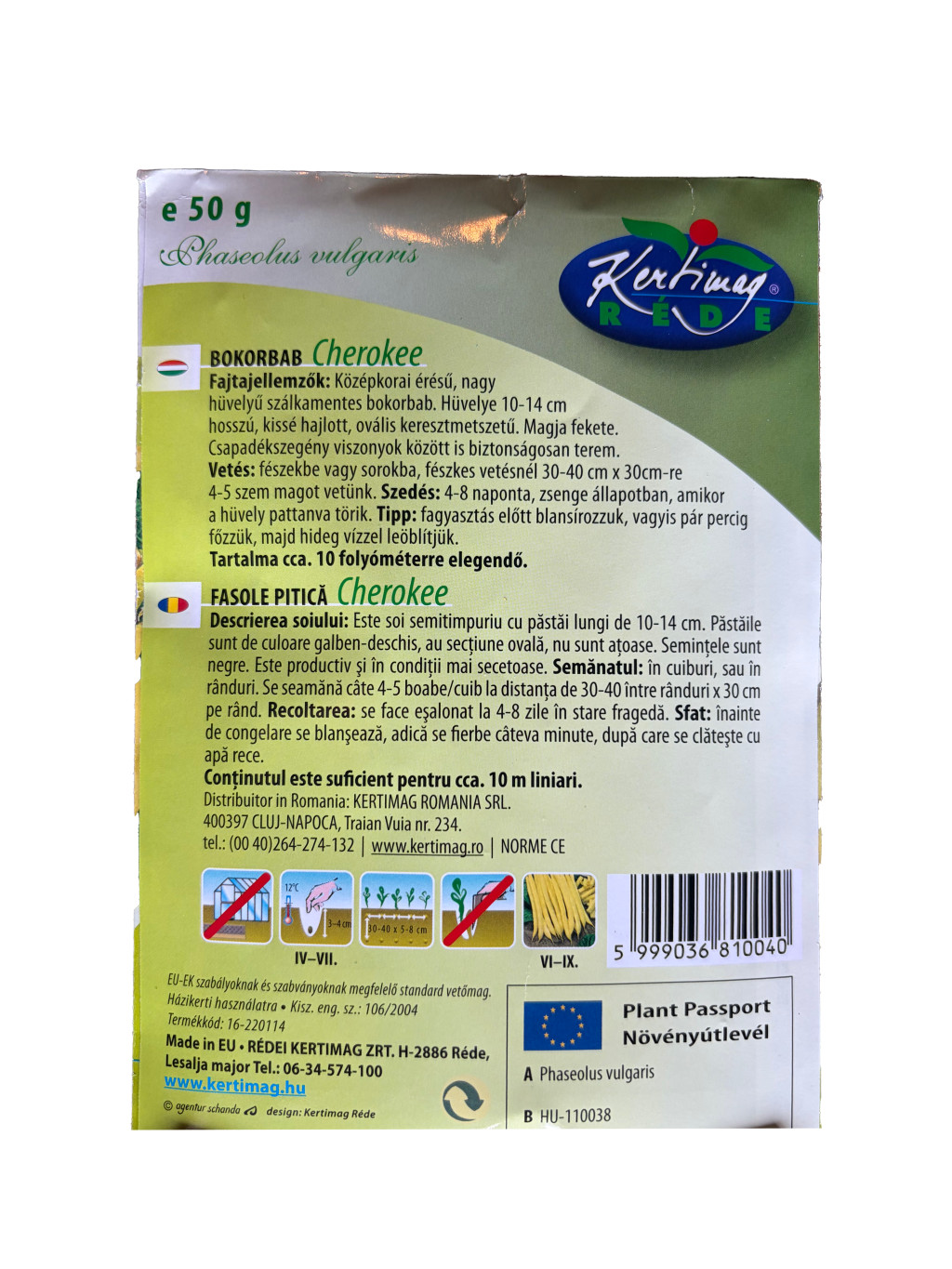 A Cherokee bokorbab korai érésű, intenzív növekedésű, bőtermő zöldbab fajta.