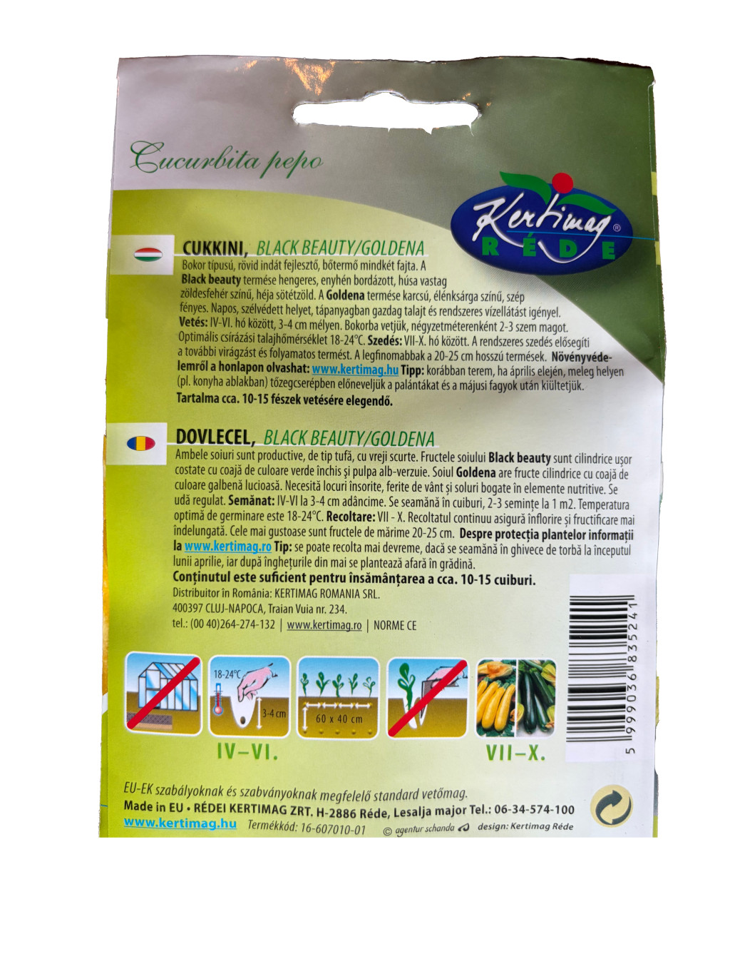 A Cukkini Duo Black Beauty / Goldena csomag két közkedvelt fajta vetőmagját tartalmazza.