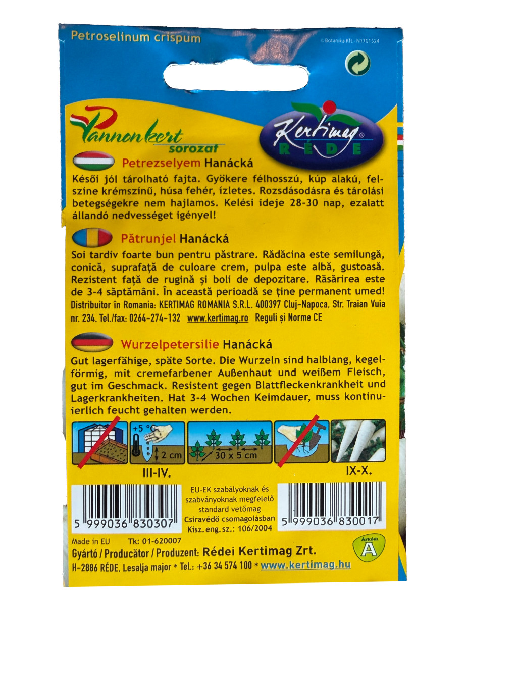 A Hanácka félhosszú, fehér húsú, aromás gyökeret nevelő petrezselyemfajta.
