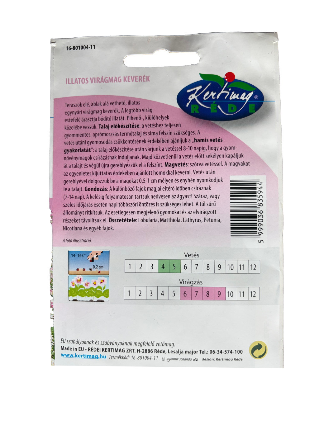 A „Bódító illatok” virágmag keverék egynyári, intenzíven illatos virágfajok harmonikus összeállítása.