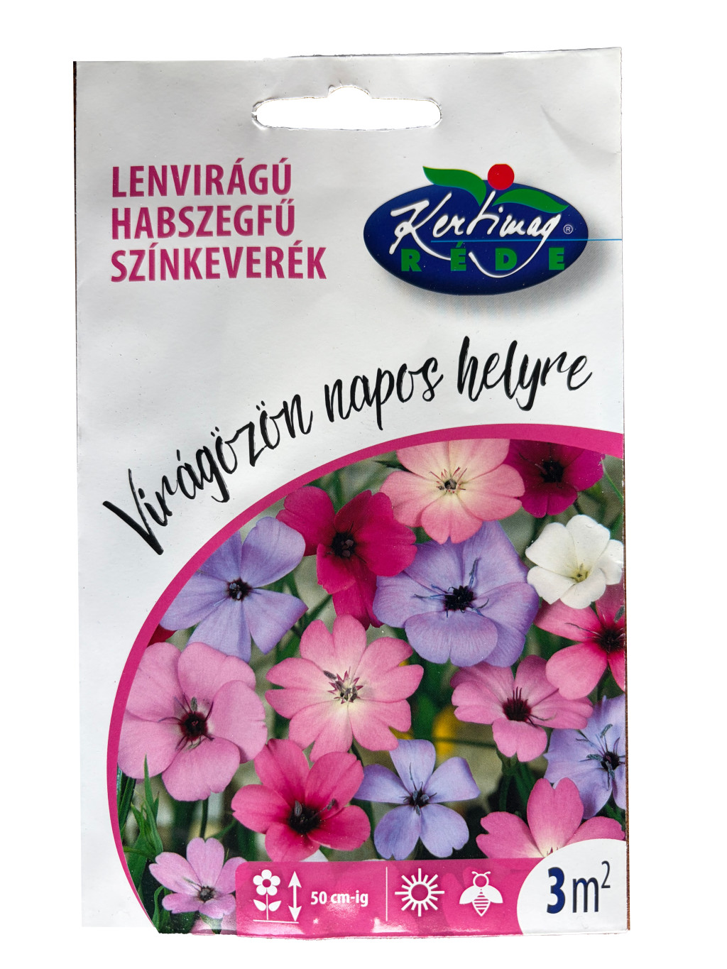 A **„Virágözön napos helyre”** keverék egynyári lenvirágú habszegfűfajtákból áll, élénk színű, apró virágai egész nyáron nyílnak. Ideális napos ágyásokba, szegélyekhez, valamint vágott virágnak.